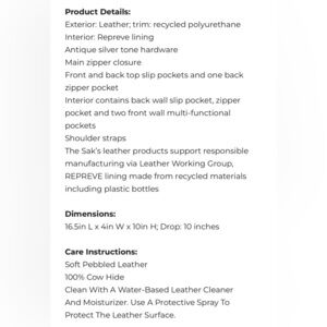 Details in photos (please note stock photos are of a gray leather, not the sage green)