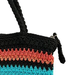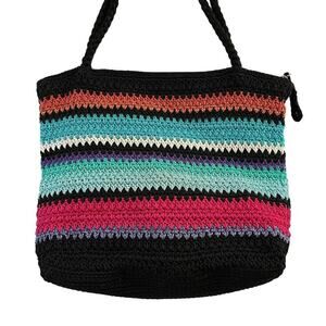 The Sak Bright Striped Multicolor Purse Crochet Zippered Shoulder Bag