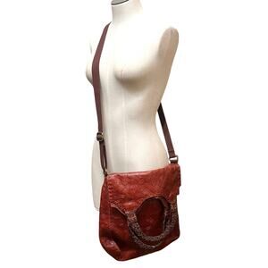The Sak Brown Braided Boho Leather Foldover Adjustable Strap Medium Crossbody
