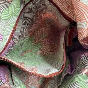 Bag has some wear/peeling on braided handles and very minor wear on fabric strap. Bag is still in really good condition!