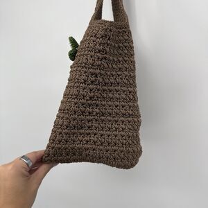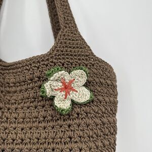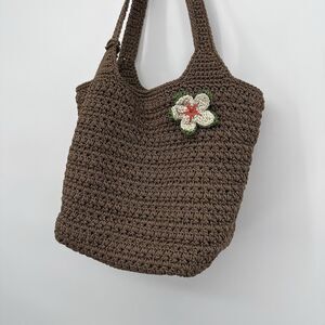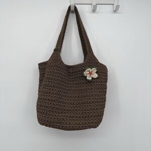 The Sak Brown Crochet Shoulder Bag Floral Applique Boho