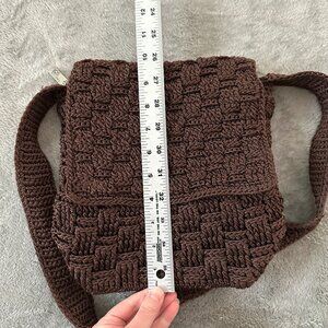 The Sak Brown Knit Crochet Flap Shoulder Bag Purse Handbag