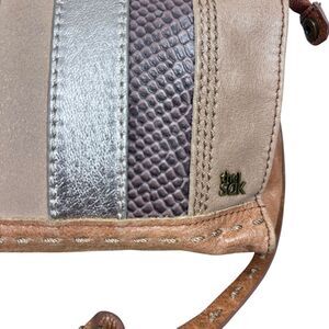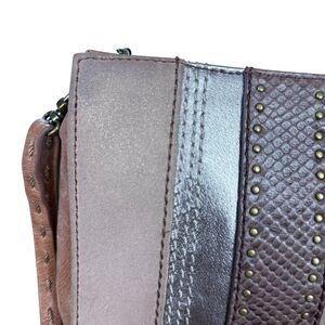 The Sak Brown Silver Studded Shoulder Purse Handbag Patchwork Boho Small Leather