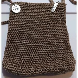 The Sak Brown Trendy 90’s Style Crochet Crossbody Bag Purse w Charm EUC