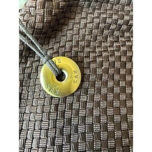 This The Sak medium shoulder bag features a rich chocolate brown woven texture made from a soft viscose blend. The zip-top design opens to a fully lined interior with slip and zip pockets for organization. Trimmed with PVC and finished with The Sak’s signature metal charm, this bag is a perfect everyday option that blends relaxed boho style with practical structure. Shoulder strap is 22 inches long and comfortably fits over the shoulder.