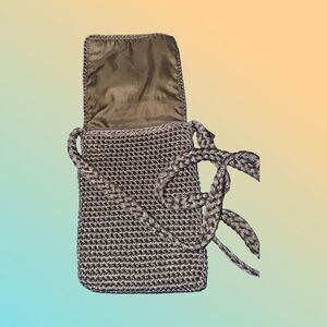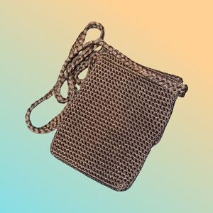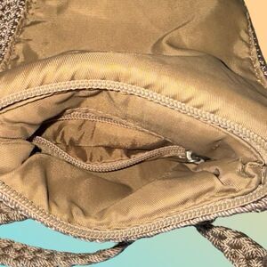 The Sak Crochet Hipster Crossbody Shoulder Bag Tan Champagne W Zipper Pocket