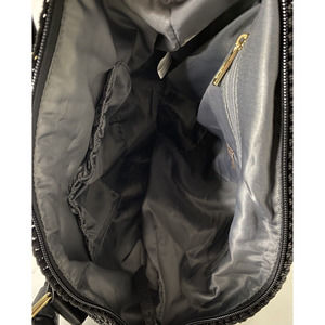The Sak Crochet Knit Bag Black Bucket Zip Top Handbag Purse Satchel Hobo