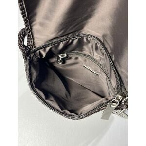 The Sak Crochet Knit Flap Over Crossbody Handbag Dark Brown Shoulder Bag Zip