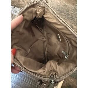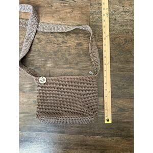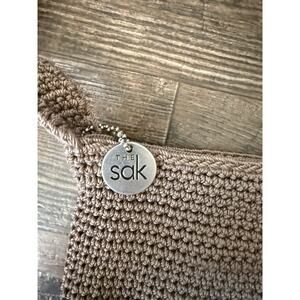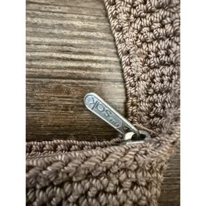 The Sak Crochet Knit Woven Shoulder Crossbody Tan Bag Purse Zipper Close