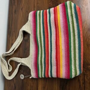 The Sak Crochet Shoulder Bag Rainbow Stripe Boho Purse w/ Logo Charm
