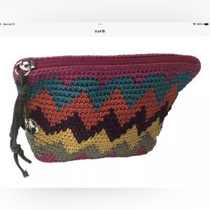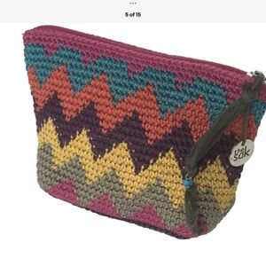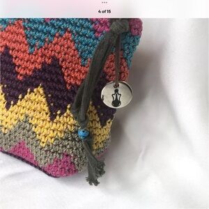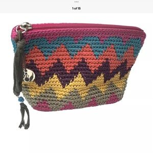 The Sak Crochet Wallet Pouch Zig Zag Chevron Boho Metal Charm Tassel Multicolor