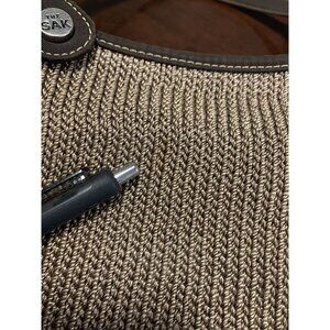 The Sak Crochet Woven Shoulder Hand Bag In Brown Tan With Leather Accents