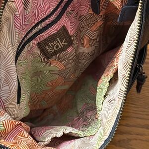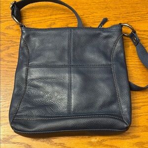 Elegant dark blue leather shoulder bag by The Sak. Ideal for daily wear.