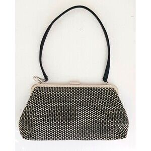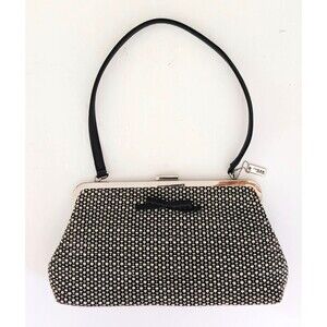 The Sak Elliott Luca Blk/White Tweed Top Handle Shoulder Bag Snap Lock Bow Trim