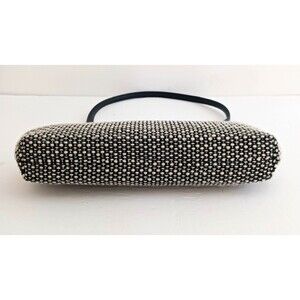 The Sak Elliott Luca Blk/White Tweed Top Handle Shoulder Bag features a classic black and white tweed exterior with a nubby woven pattern, accented with a black leather tied bow trim. This medium-sized shoulder bag has a snap lock closure, silver hardware, and inner pockets for organization. The bag has a rectangular shape, with a black leather handle/strap for easy carrying. The interior is lined and offers plenty of space for storage. Ideal for women looking for a stylish and functional handbag for any outfit. Bag measures 11X2X6 plus a40 9" strap drop. Excellent pre owned condition, clean inside and out. Beautiful