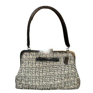 The Sak Elliott Lucca Woven Handbag Black Tweed Frame Clasp Satchel Mini Bag