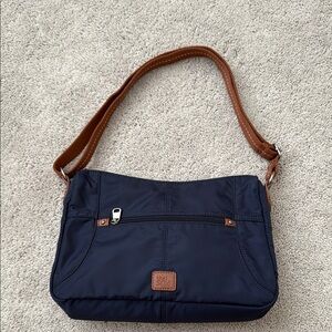 Color: Navy with tan strap