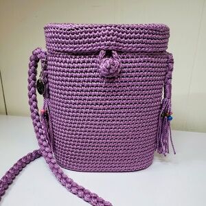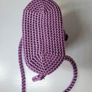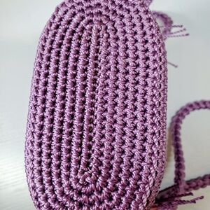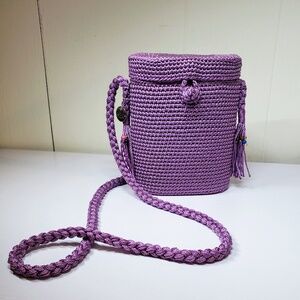 Beautiful crocheted structured phone crossbody in purple heather by the Sak. This bag is in excellent condition, is very clean and was only used one time. Measures 7H x 6W x 3D. Please refer to all pictures for reference. From a smoke free home.