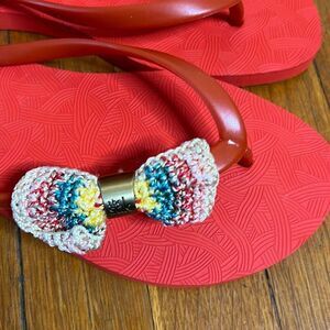 The Sak Flip Flops Red Crochet Bow Size 8 Flat Sandals
