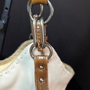 The Sak Genuine Leather Handbag Purse Ivory with Brown Straps