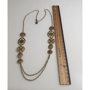 The Sak Gold Tone Cutout Oval Link Long Necklace Layered Chain Lobster Clasp