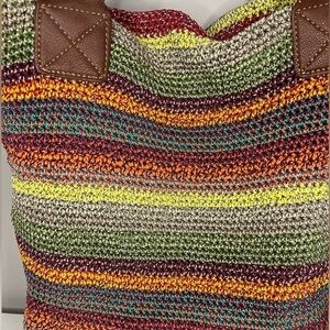 The Sak Gypsy Cambria Multi-Colored Striped Crochet Knit Tote Shoulder Bag Boho