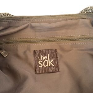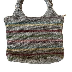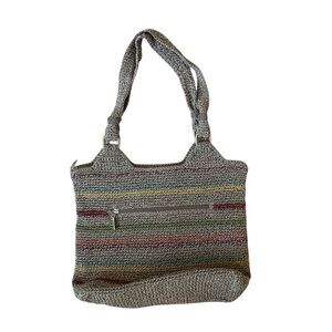 Gorgeous gray colored bag from The Sak with multicolor stripes throughout. In excellent preowned condition; no visible flaws.