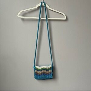 The Sak Handbag Purse Crossbody Bag Blue Teal Chevron Pattern Beachy Summer