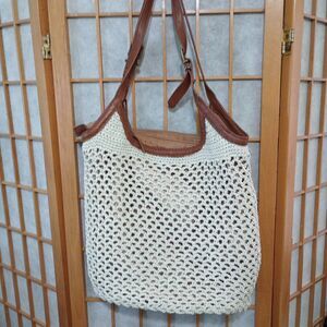 The Sak Heritage Hobo Shoulder Bag Leather Crochet Purse 2015 Brown Vintage Bag