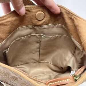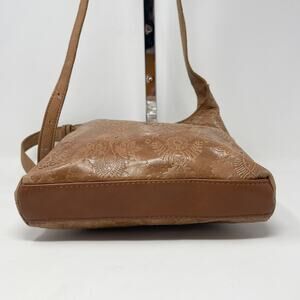 The Sak Huntley Leather Crossbody Tobacco Floral Embossed Beaded Tassel Fringe