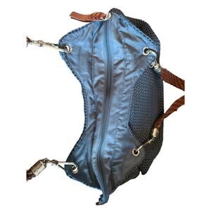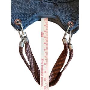 The Sak Indio Crochet Tote Hobo Bag Navy Preppy Boho