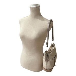 The Sak Indio Silver Beige Metallic Leather Zip Shoulder Handbag Purse Y2K Vibes