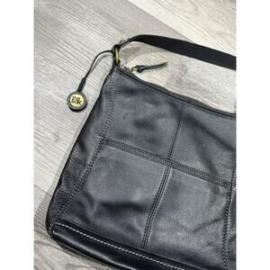 The Sak Iris Crossbody Purse Bag Black Pebbled Leather Adjustable Strap/