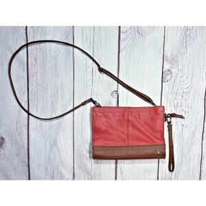 The Sak Iris Demi Orange Brown Pebble Leather Crossbody Shoulder Purse Bag