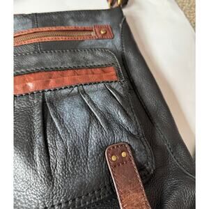 The Sak Iris Pebbled Leather Crossbody Purse Black Brown Adjustable Strap