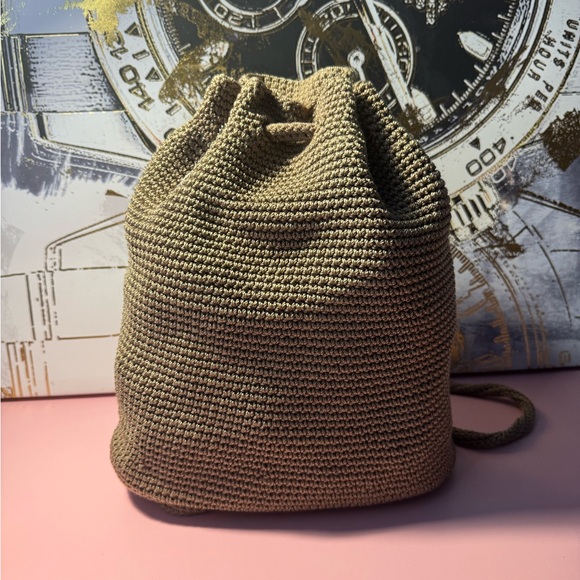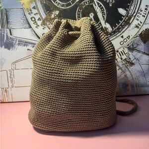 Compact knit drawstring backpack by The Sak. Soft textured knit exterior. Single compartment with drawstring closure. Comfortable knit shoulder straps. Casual, versatile carry.