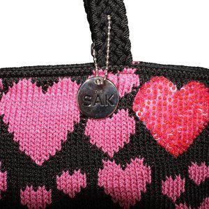 The Sak Knitted Multi Pink Blk Heart Sequined Embellished Double Strap Purse Bag