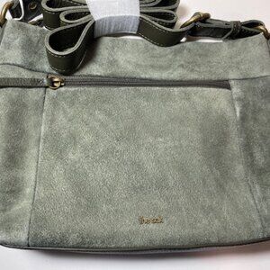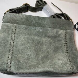 The Sak Melrose Leather Crossbody Moss Suede NEW adjustable crossbody strap, whipstitch details, gold tone hardware, pebbled detail, brand logo accents Retail $138
