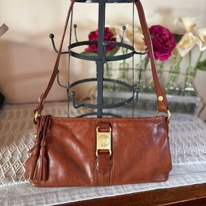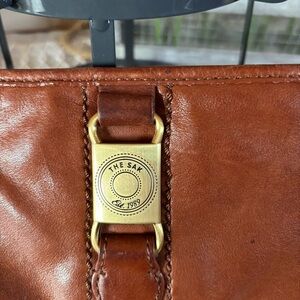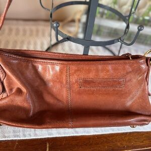The Sak Leather Pouchette Shoulder Bag. Caramel Color. Gold toned hardware.