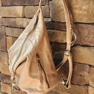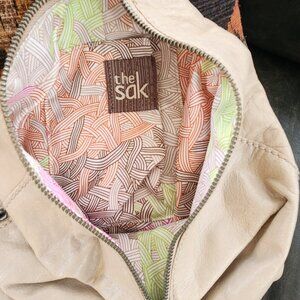 The Sak beige leather backpack purse. Use once. Excellent condition.