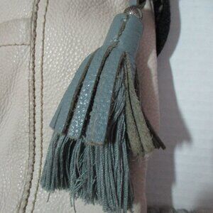 The Sak Light Tan or Cream and Brown Crossbody Leather Purse with Pockets