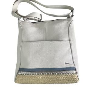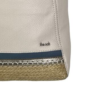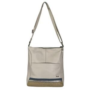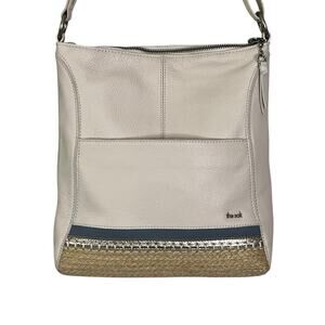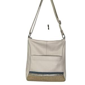 The Sak Lucia Crossbody Bag Purse Ivory Leather Raffia Trim Adjustable Strap