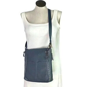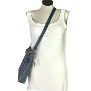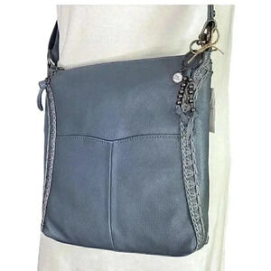 The Sak Lucia Leather Zip Top Crossbody Bag Dusty Blue Crochet Adjustable NEW