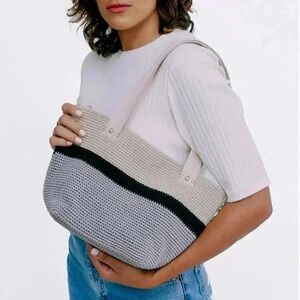 The Sak Mendocino Crochet Medium Double Strap Zip Top Tote Vegan NEW 109265