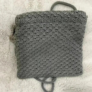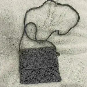 The Sak Mini Crocheted CrossBody Bag w Strap Fold Over Flap Zip Close Gray 7x6