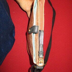 The Sak Mini Crossbody Bag Brown Distressed Leather Body, White Pebbled Leather Panel, Beige stitching 8.5" tall, 7.5" wide, 5/8" thick Black webbed adjustable Strap: 12" to 24" drop Very Good Condition Offers Considered Bundling Discounts on Purchases. Bundling can $ave on $hipping** (**weigh limitations)