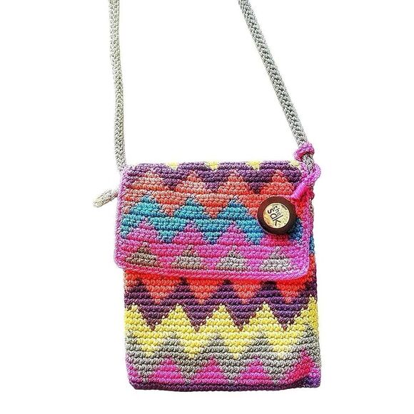 The Sak Multicolored Chevron Design Crochet Bohemian Coquette Crossbody Bag EUC