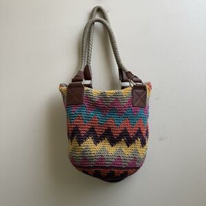 The Sak Multicolored Crochet Purse Chevron Design Boho