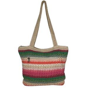 The Sak Multicolored Rainbow Striped Retro Y2K Woven Crochet Beach Tote Bag. Excellent preowned condition. No rips, cuts, or holes. Clean, no stains. Please see pictures.