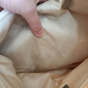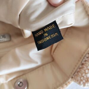 The Sak Natural Beige Handmade Crochet Boho Casual Shoulder Bag Purse Tote is a stylish and unique piece perfect for the free-spirited hippie in you. Made with woven nylon material and featuring a square shape, this medium-sized bag has a snap closure and a stylish shoulder strap in beige. The exterior is accented with crochet detailing, and the interior is lined with nylon in a matching beige color. This bag is ideal for casual occasions and comes with a bag charm accessory, making it a perfect choice for those who appreciate bohemian and nature-inspired fashion. In good pre-loved condition!